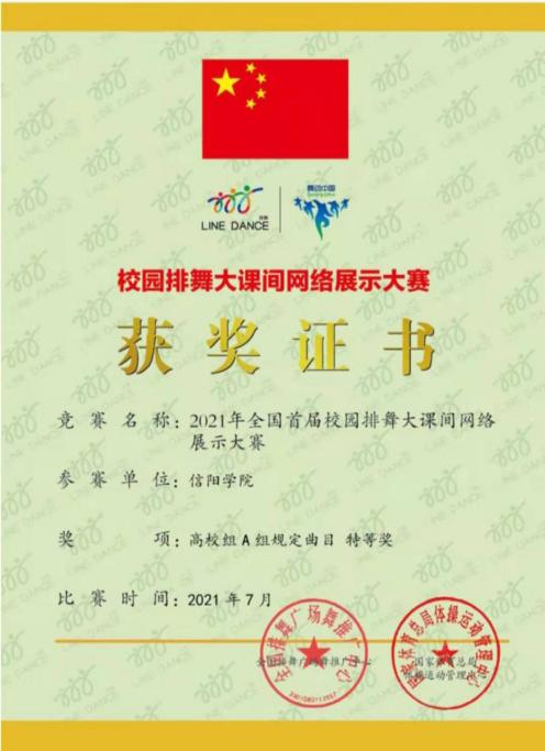 2021年5月12号,我校参加了“庆祝中国共产党成立100周年百校联动/百首原创/百万同跳”活动,我校十一个二级学院的负责人老师和学生共计230余人组成了太阳集团tcy8722代表队,经过老太阳集团8722、团委、学生处、宣传部精心组织,各院参加的师生艰苦有效的训练,取得圆满成功。2021年7月24日-26日,在排舞中国平台进行网络直播评选,我校获高校组A组团体“特等奖”、高校组A组规定曲目“特等奖”、高校组A组自选曲目“一等奖”。
