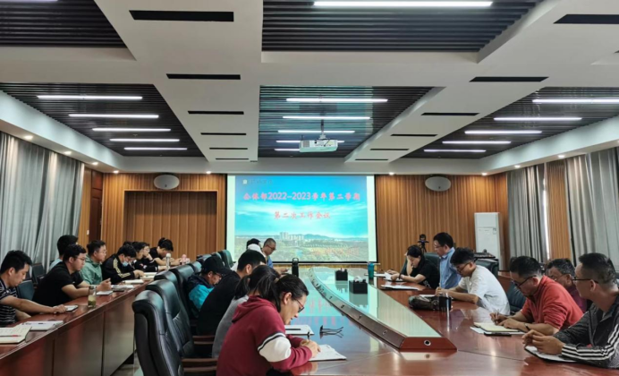 5月30日下午,老太阳集团87222022--2023学年第二学期第二次工作会议在综合楼1410会议室召开,教学干事、行政干事、教研室主任、特聘教授及全体教师参加了会议,会议由老太阳集团8722主任周曙光主持。