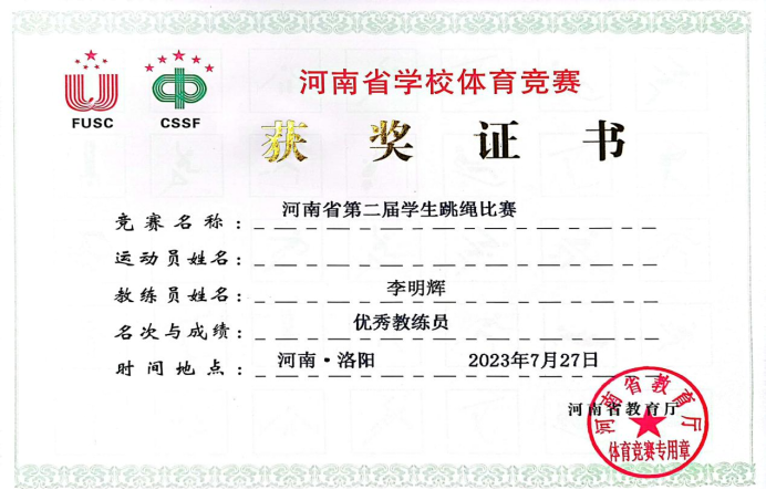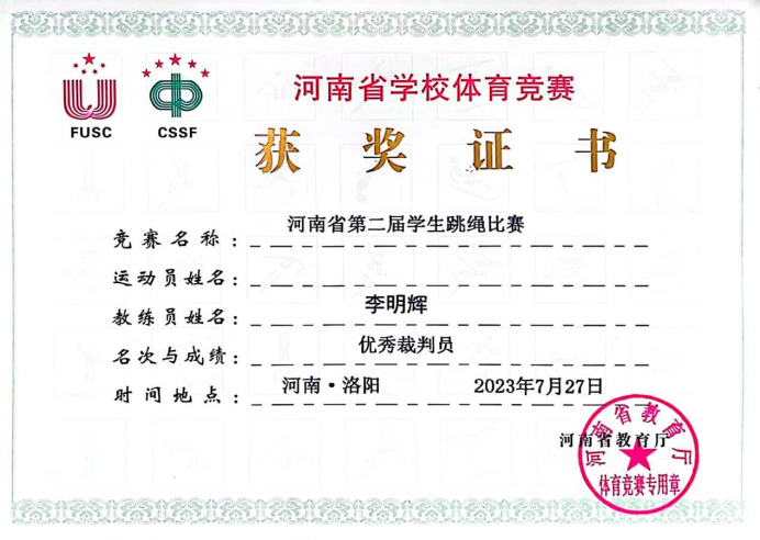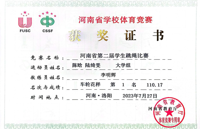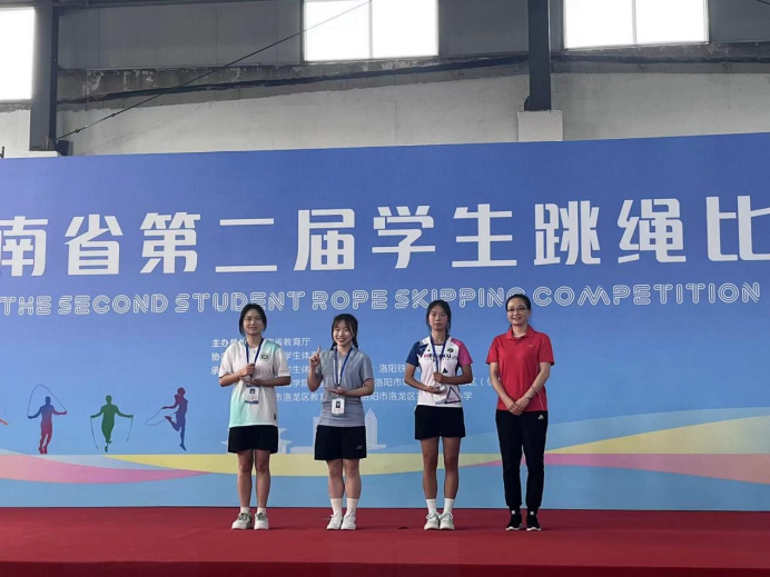 7月25日-29日,由河南省教育厅、河南省学生体育总会主办的河南省第二届学生跳绳比赛在洛阳铁路信息工程学校举行。来自全省各大中小学校、幼儿园四个学段的856名运动健儿冒着高温酷暑奋力拼搏,展现出一场高水平的较量。本次比赛共计9个大项,12个小项,我校跳绳代表队参加了所有项目的比赛。