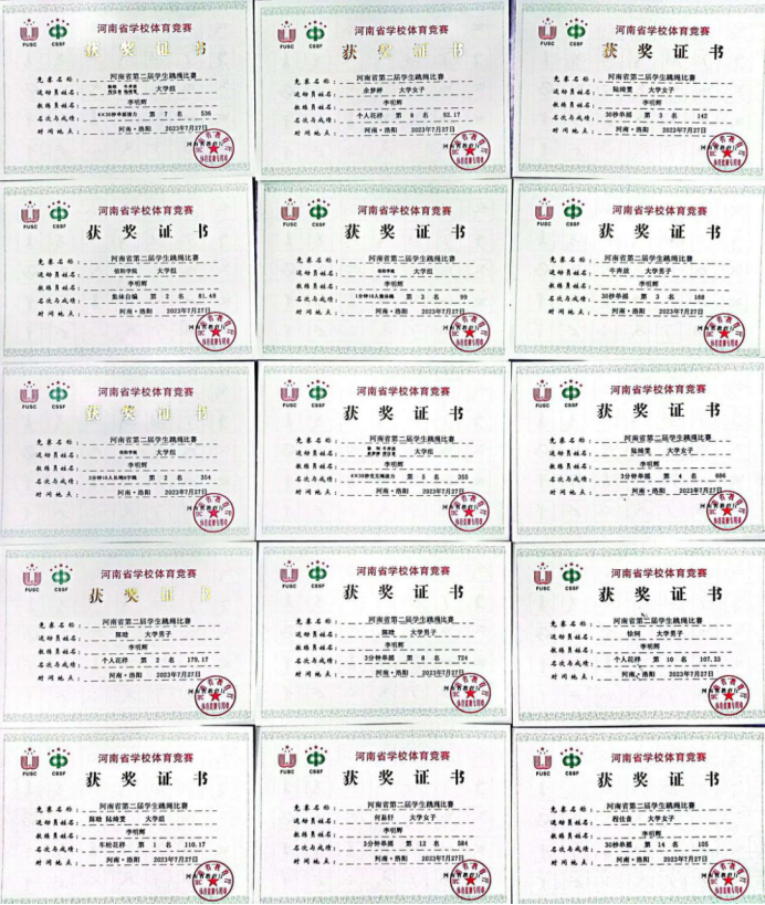 经过激烈的角逐,荣获大学组团体一等奖和优秀组织奖;李明辉老师也荣获“优秀教练员”称号。学生们也在个人项目、团体项目获得优异成绩。