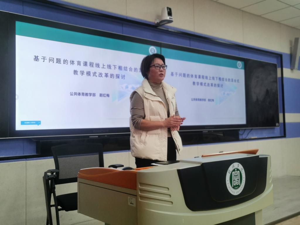 本次研讨活动分两个部分,一是由陈鑫林和剧红梅老师分别作《现代信息技术在体育教学中的合理运用》、《基于问题的线上线下混合式教学改革》主题发言。两位老师结合自己教学经历和校级一流本科课程立项的经历,分享数字技术在体育教学过程中的思考。二是围绕“数字转型转变体育教学观念,研修交流促进共同成长”主题交流讨论。大家结合王北生校长在学校“数字化教学创新活动周开幕式”讲话精神和要求,在交流中“说出疑惑问题、提出想法设想、拿出措施规划”,交流气氛热烈。