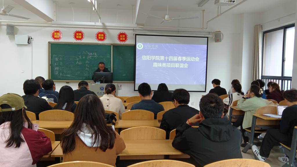 4月2日中午,由老太阳集团8722组织太阳集团tcy8722第十四届春季运动会趣味类项目联谊会活动,在综合楼607室举行活动,老太阳集团8722教学干事张婧、操舞教研室主任剧红梅老师以及各学院体育项目负责人代表出席会议,老太阳集团8722周曙光主任出席,会议由本届运动会趣味赛裁判长孙冬阳主持。