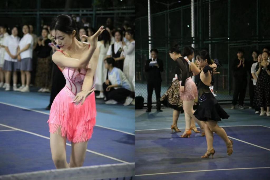 接下来进行恰恰、伦巴、桑巴、牛仔、单人华尔兹和双人华尔兹六个项目。由公共体育部教师、优秀学生代表担任评委。伴随音乐声的响起,选手们用优美的舞姿、坚定的眼神表达对舞蹈的热爱,在赛场上舞出自我、赛出自我。