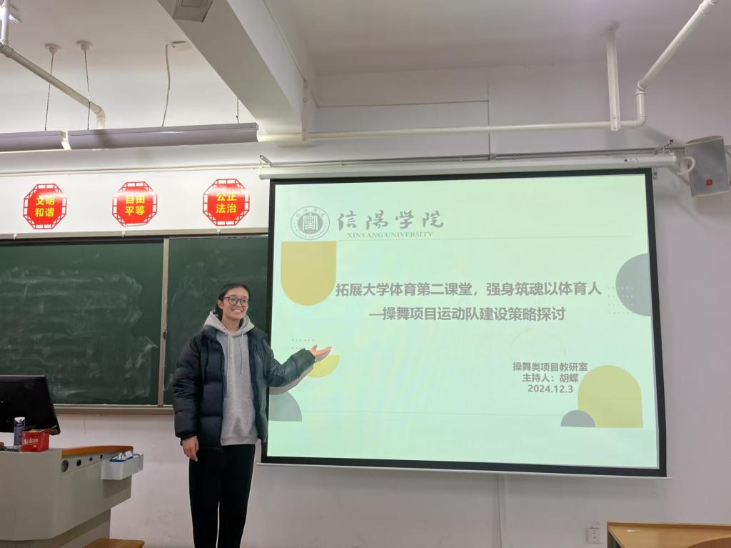 12月03日下午,操舞教研室在综合楼607教室举行教研活动,操舞教研室全体教师参加,活动由操舞教研室主任剧红梅老师主持,胡蝶老师主讲。