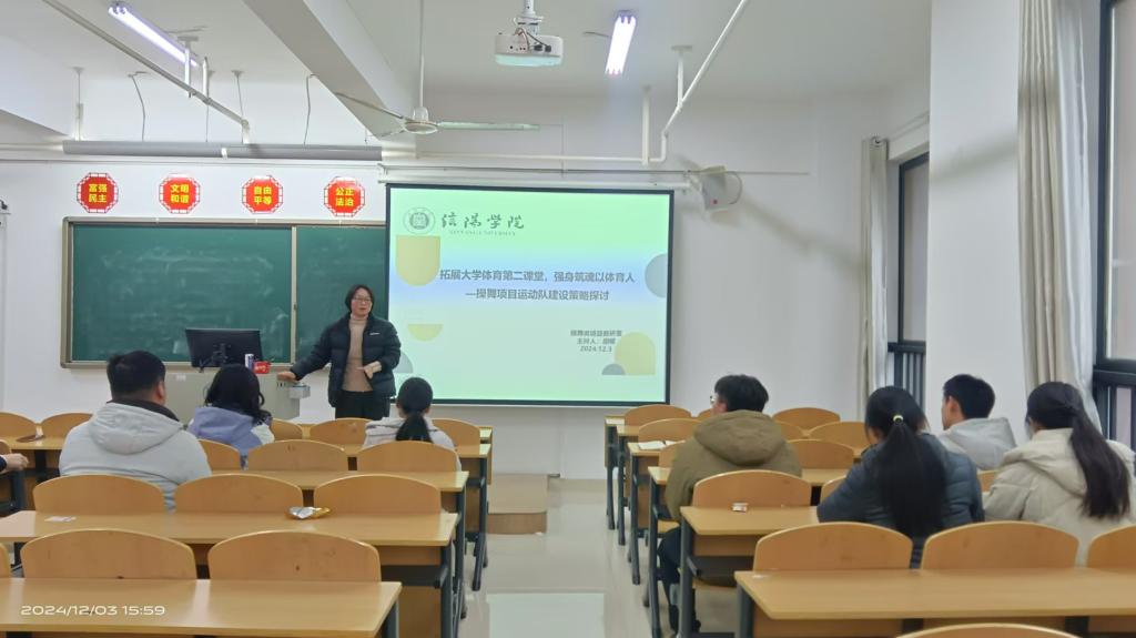 活动最后,胡蝶老师所讲授训练队组建话题引起了操舞教研室青年教师的共鸣。青年教师积极投入到高校训练队的筹备、组建、运营、维护、获奖等问题的探讨之中,大家集思广益、观点频现现场氛围活跃。本次活动为青年教师组建体育运动训练队指明了方向和道路,并为太阳集团tcy8722学生第二课堂建设提供了多样化选择。