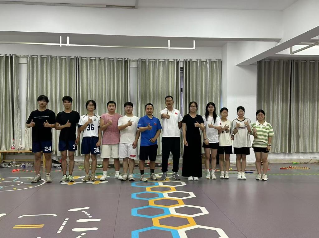 赛前,我校跳绳队充分利用集中备战时间,不畏炎热、挥洒汗水。花样跳绳项目属于表现难美型项目同时也要求运动员有较强的身体素质,为了提高运动员竞技水平,鼓舞运动员参赛士气,特邀请公体部刘岗生主任指导工作鼓舞运动员士气。