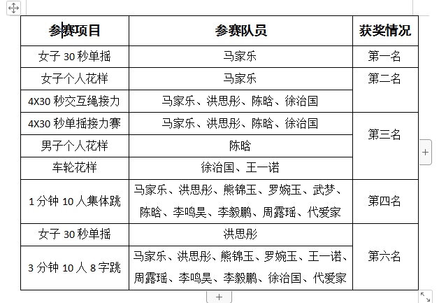经过激烈的角逐,我校跳绳队荣获大学组团体二等奖和体育道德风尚奖;李明辉和王思远老师也荣获“优秀教练员”称号。学生们也在个人项目、团体项目获得优异成绩。