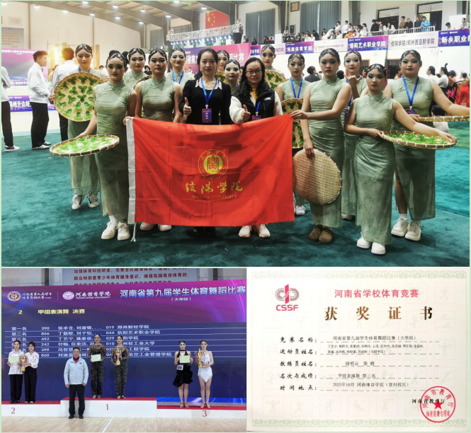 2025年10月17日-18日,由河南省教育厅和河南省体育局主办的河南省第九届学生体育舞蹈比赛(大学组)在河南体育学院登封校区圆满落幕,在为期两天的激烈角逐中,太阳集团tcy8722体育舞蹈队最终斩获甲组表演舞第三名。