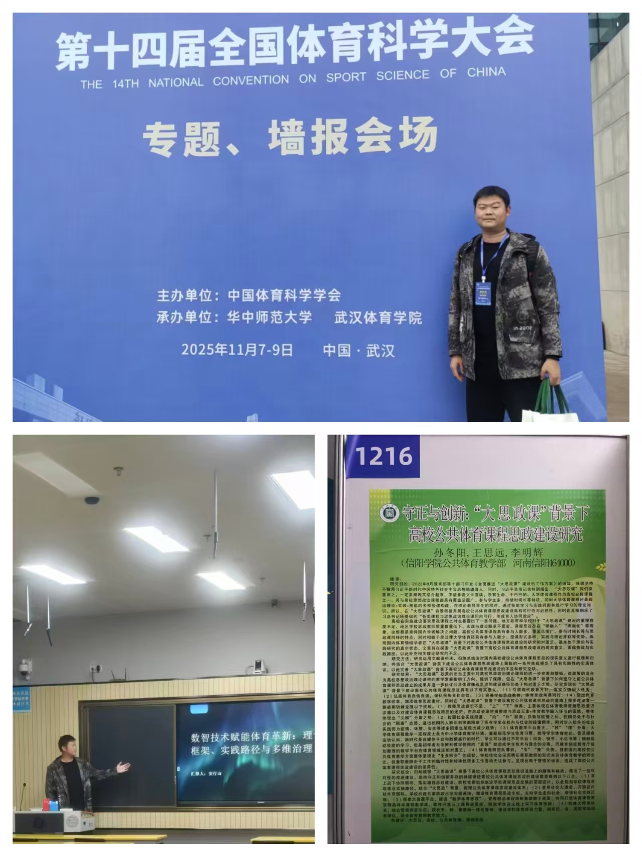 本次大会,我校体育教师积极准备,共有2篇专业论文被大会录用,其中包含专题报告1篇,墙报交流1篇。参会老师在分会场作专题报告、墙报交流得到与会专家学者充分肯定,并与参会专家和兄弟院校科研工作者进行充分的交流与探讨。