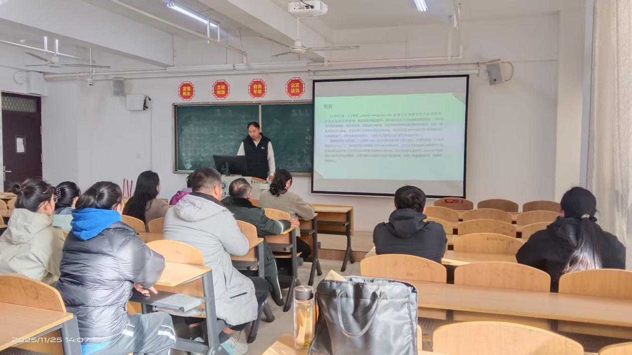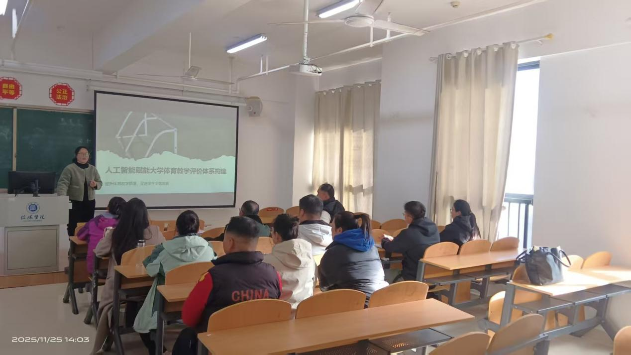 11月25日下午,操舞教研室在综合楼607举行专题教研活动,主题为“人工智能赋能大学体育教学评价体系构建”。活动由剧红梅老师主持,李明辉老师主讲,教研室全体教师参加。